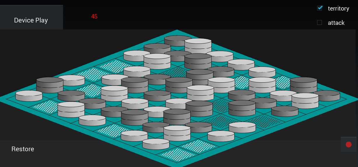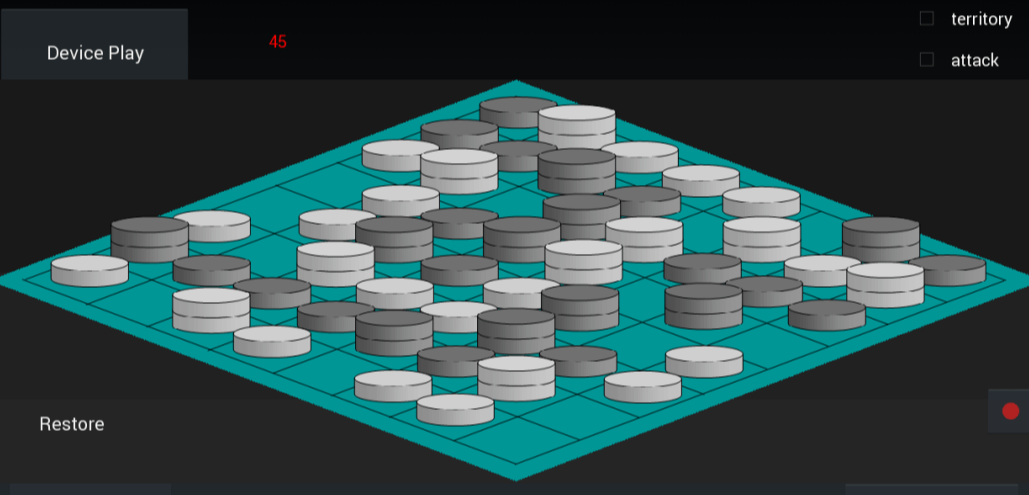 territory claims after 30 plays - white has created a connection with the vulnerable pieces at 45 and 35